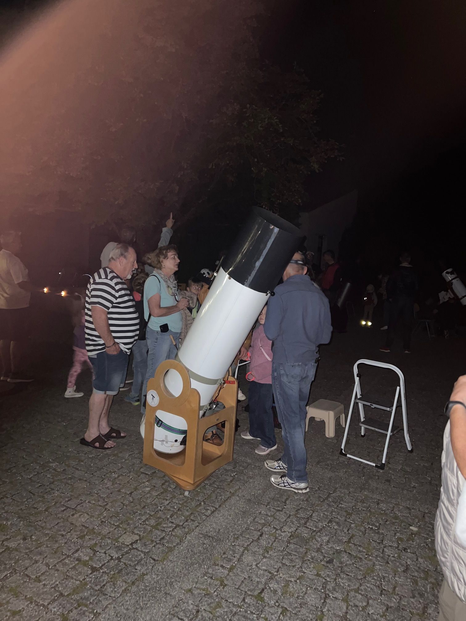 Die große Attraktion befand sich auf dem Pausenhof: Dort waren fünf große Teleskope aufgebaut, durch die Groß und Klein uter fachkundiger Anleitung Blicke in den Sternenhimmel werfen konnten. Einer der Astrologen hatte mit seinem Equipment sogar den weiten Weg aus Tirschenreuth auf sich genommen.