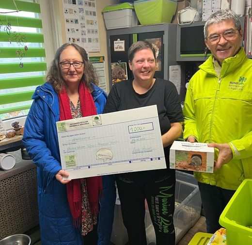 Den Spendenscheck konnten Referentin Heike Heck und Ortsgruppenvorsitzender Detlev Reusch an Christine Wenker von der Igel-Pflegestation übergeben.