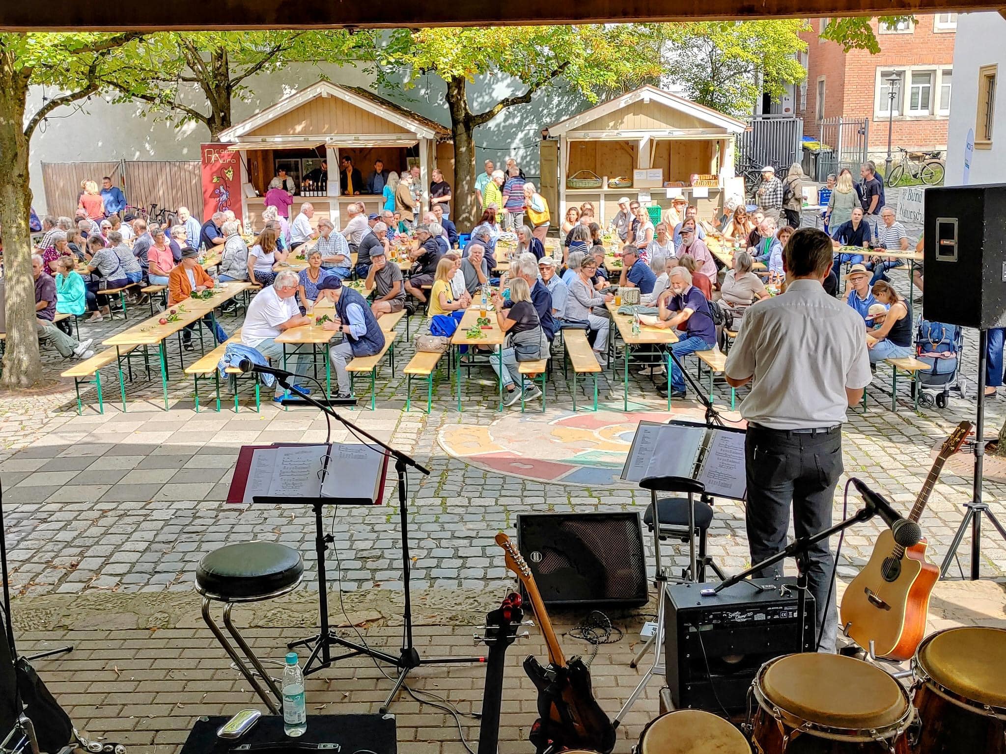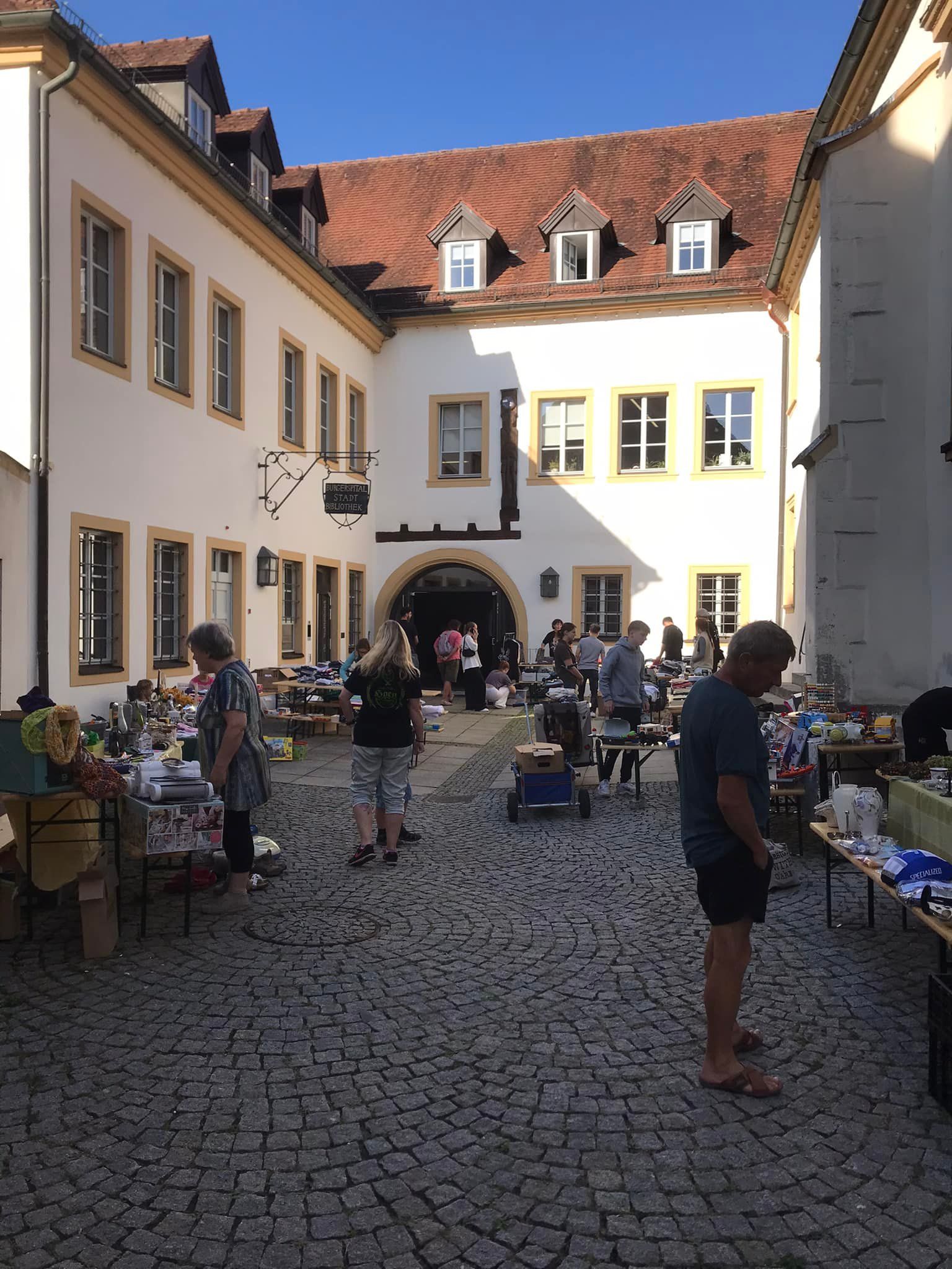 2. Familienfreundliches Rahmenprogramm: Im Spitalgarten fand ein Flohmarkt statt, begleitet von einem Kinderprogramm mit Papierschöpfen, Basteln und Kinderschminken.